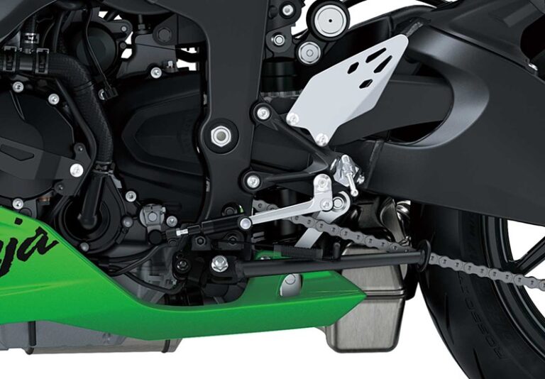 Le système de gestion des freins haute précision de Kawasaki, conçu pour les motos supersport et prenant en compte leurs caractéristiques de maniabilité particulières, assure un freinage très efficace avec une intrusion minimale lors de la conduite sportive.